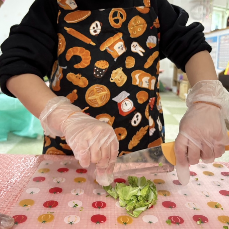 キャベツのみじん切りやお肉の細切りに挑戦しましたよ。